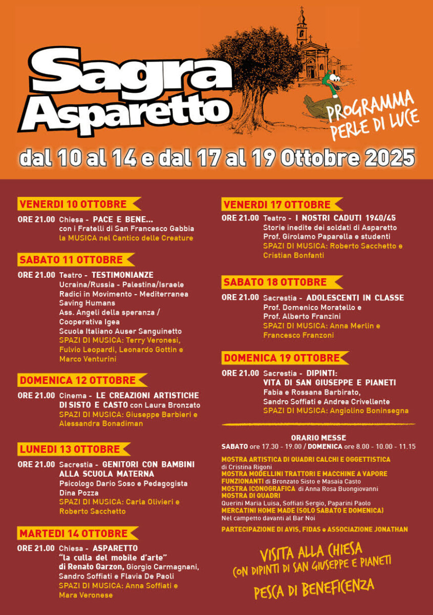 Il 14 Ottobre 2017, la comunità parrocchiale di Asparetto accoglie don Gianfranco Milanese, inviato dal Vescovo come suo nuovo parroco.